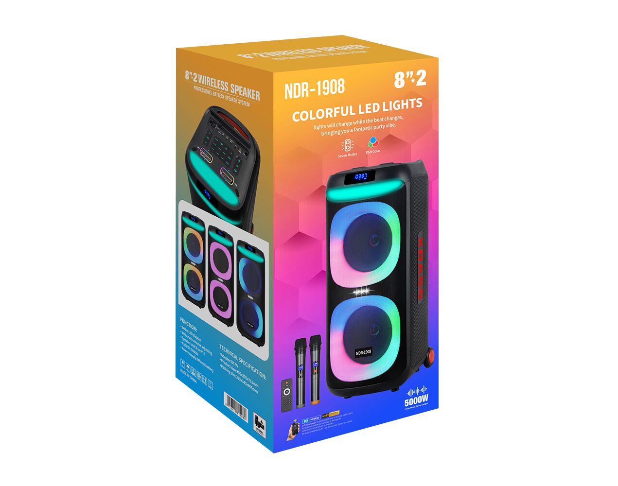 Zvucnik bluetooth NDR-1908 40W 2*8 inca sa dva mikrofona crni (MS)